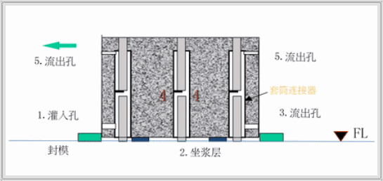 套筒灌漿連接方式是帶肋鋼筋插入內腔為凹凸表面的灌漿套筒,在套筒與鋼筋的間隙之間灌注并充滿專用高強水泥基灌漿料,灌漿料凝固后將鋼筋錨固在套筒內而實現(xiàn)的一種鋼筋連接方法。