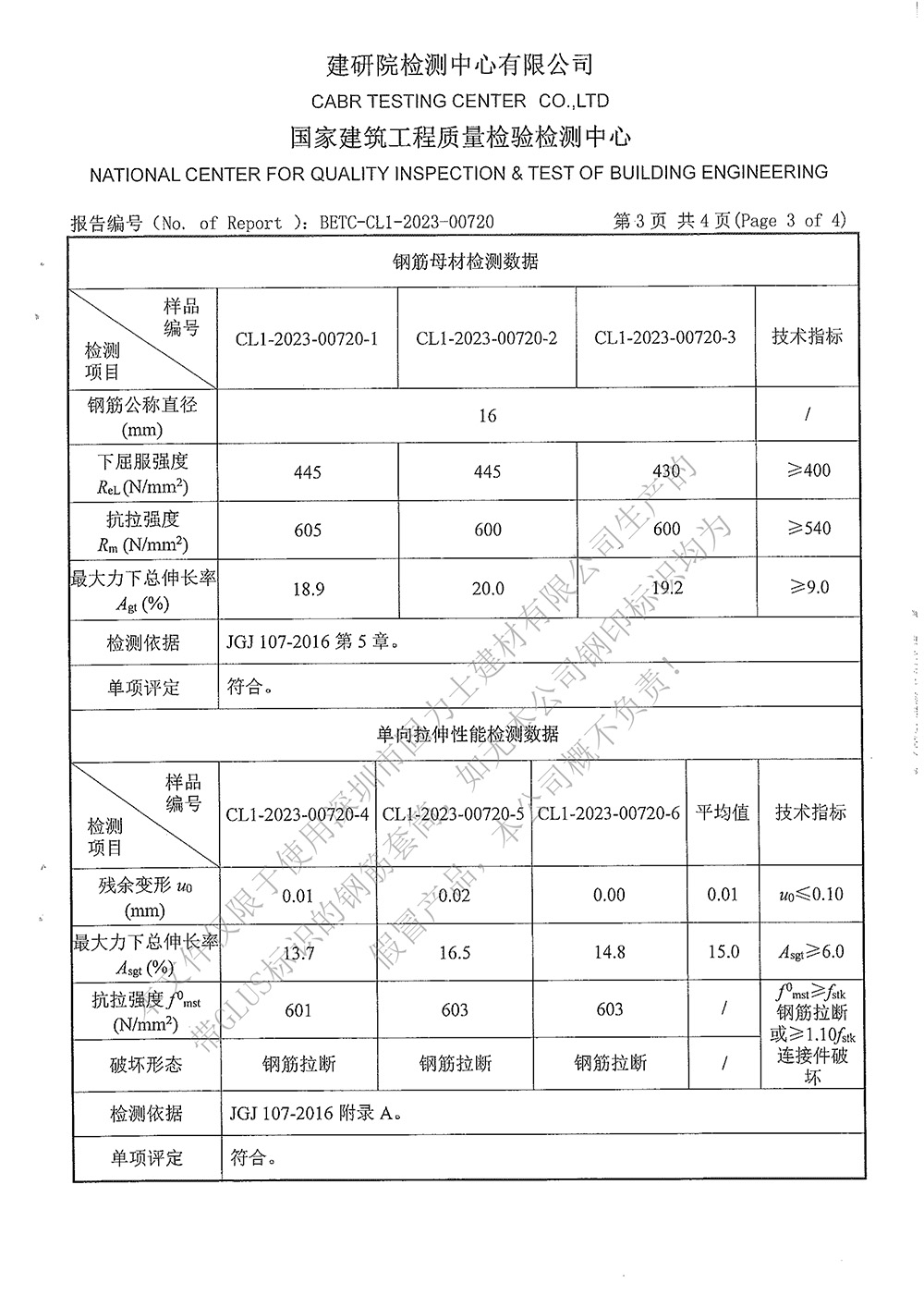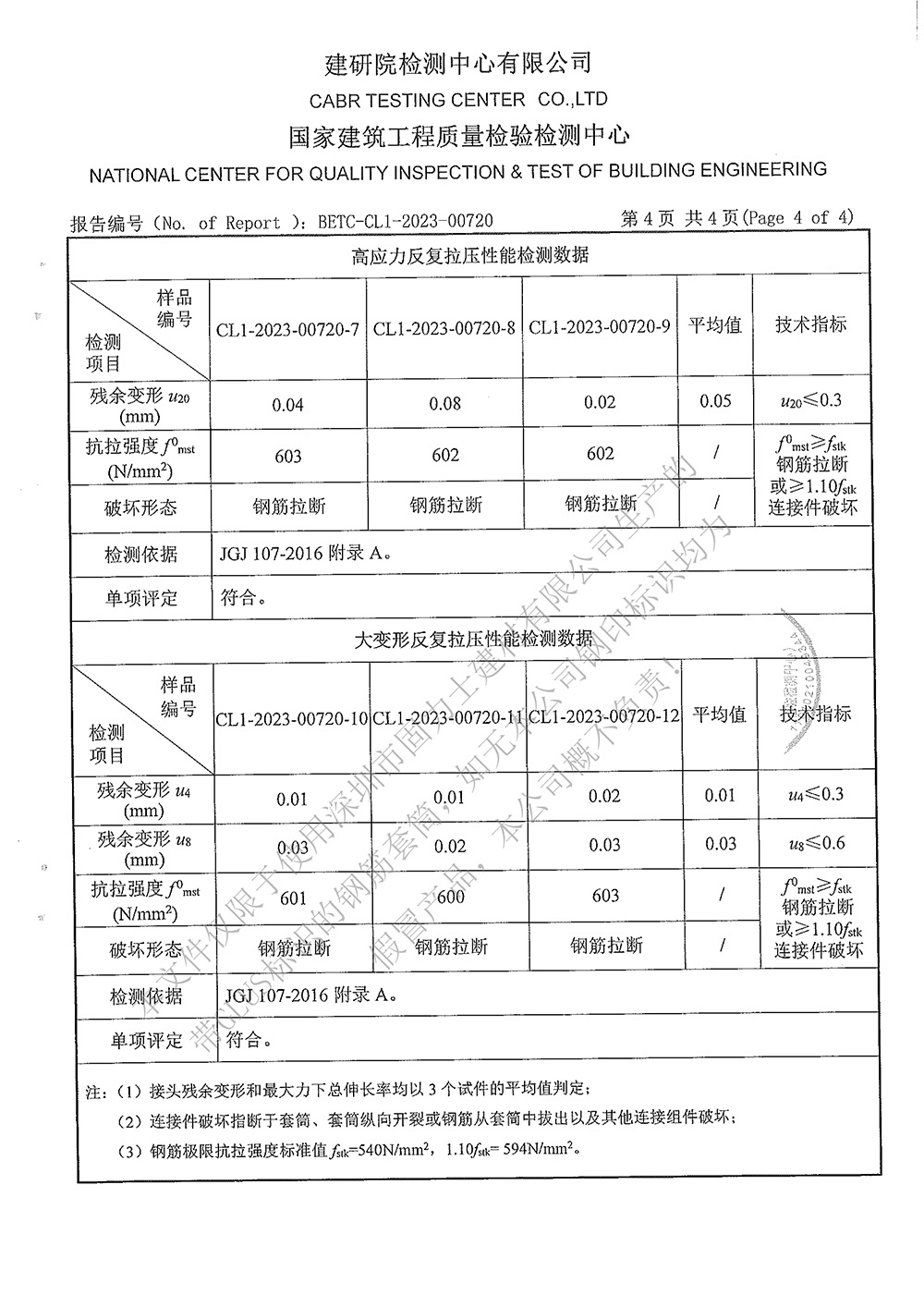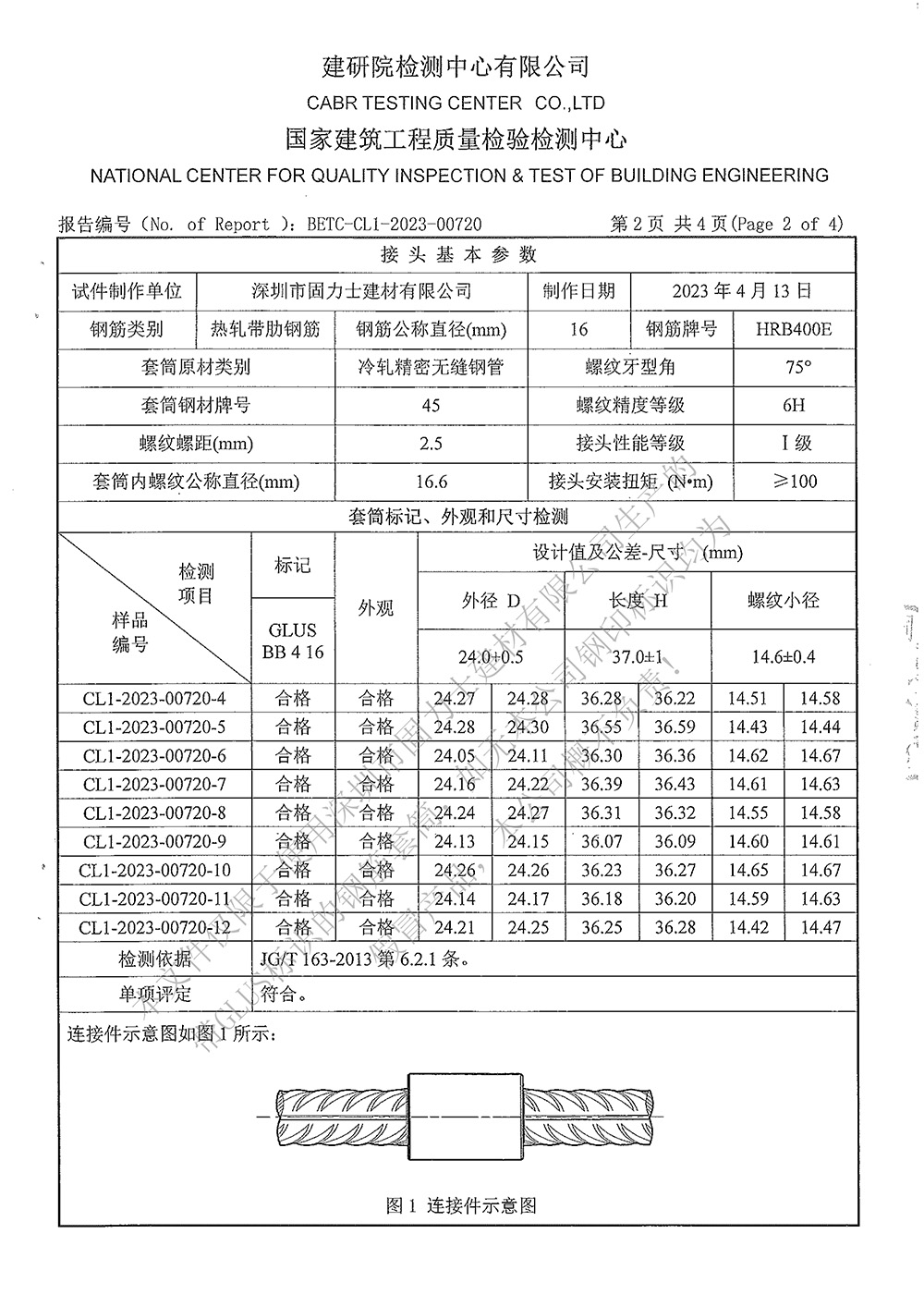 固力士鋼筋機械連接用套筒2023年型式檢驗報告